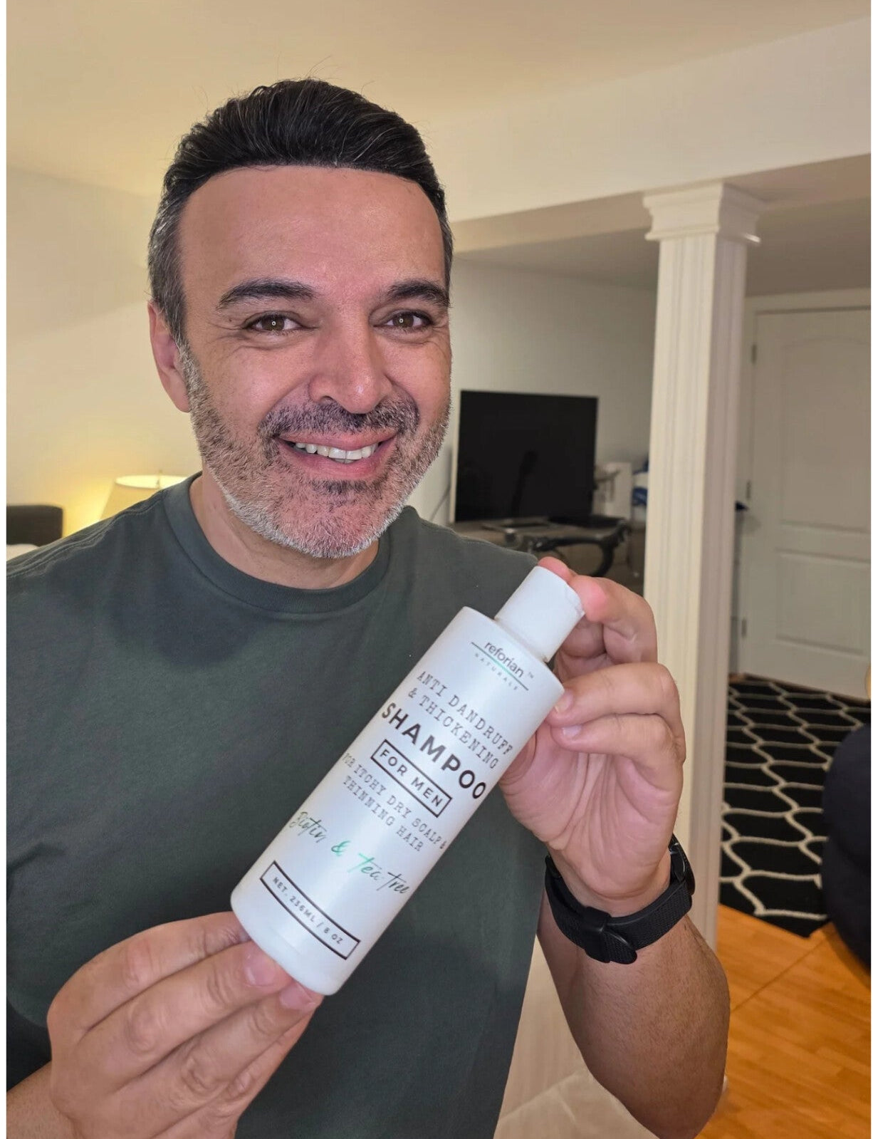 "Living your best hair life! My hair feels fuller, especially around my temples, and I’m seeing less shedding. Doesn’t dry out my scalp and smells pleasantly clean. Highly recommend for thinning or hair loss!"