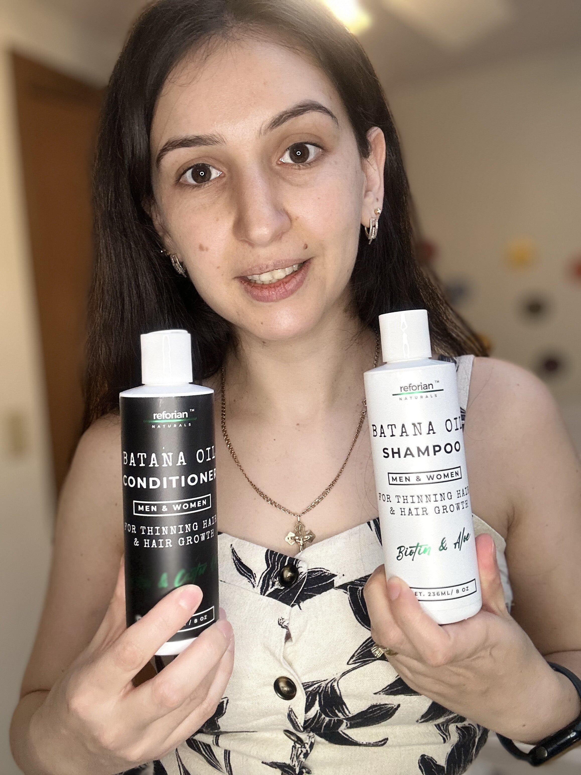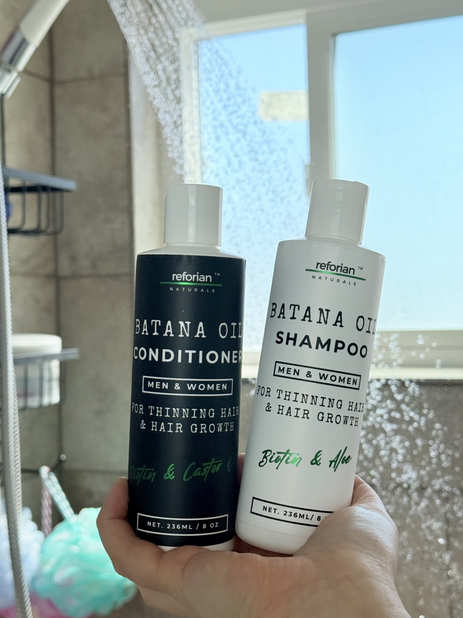 "After going through three pregnancies, my hair became extremely thin, brittle, and lifeless. I've tried countless products, but nothing truly worked —until I discovered the Batana Oil Shampoo & Conditioner Set. This product has literally saved my hair. After just a few uses, I noticed a significant difference: my hair felt stronger, looked fuller, and had a natural shine again. It's gentle yet effective, and I love that it doesn't leave any heavy residue. If you're dealing with hair loss or damage, especially postpartum, I highly recommend giving this a try. It truly brought my hair back to life."
